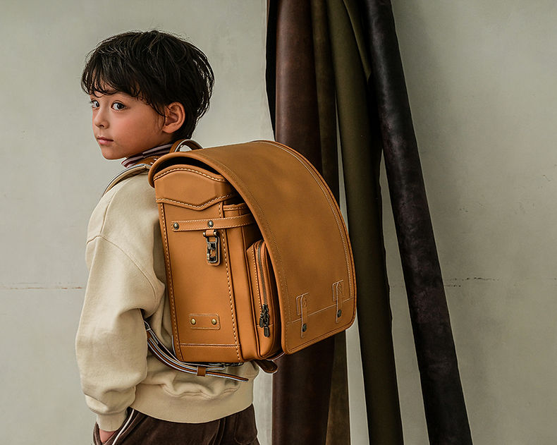 ていねいなステッチで革バッグのような佇まいに。落ち着いたキャメルカラーで、温かみのあるランドセルに仕上げました。